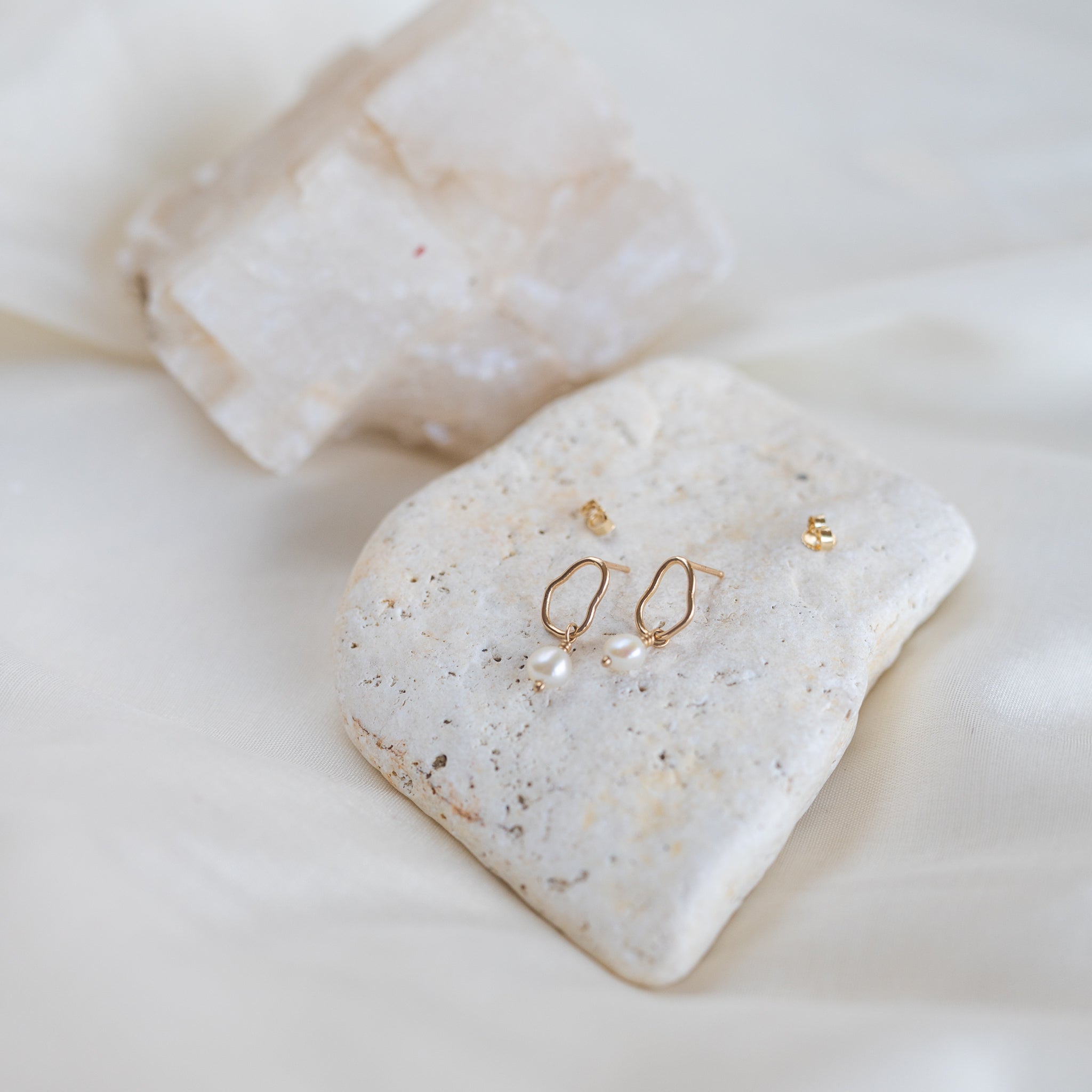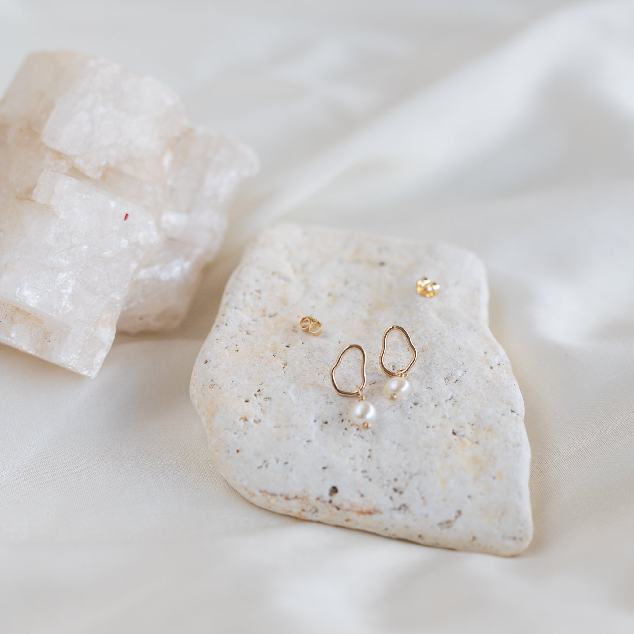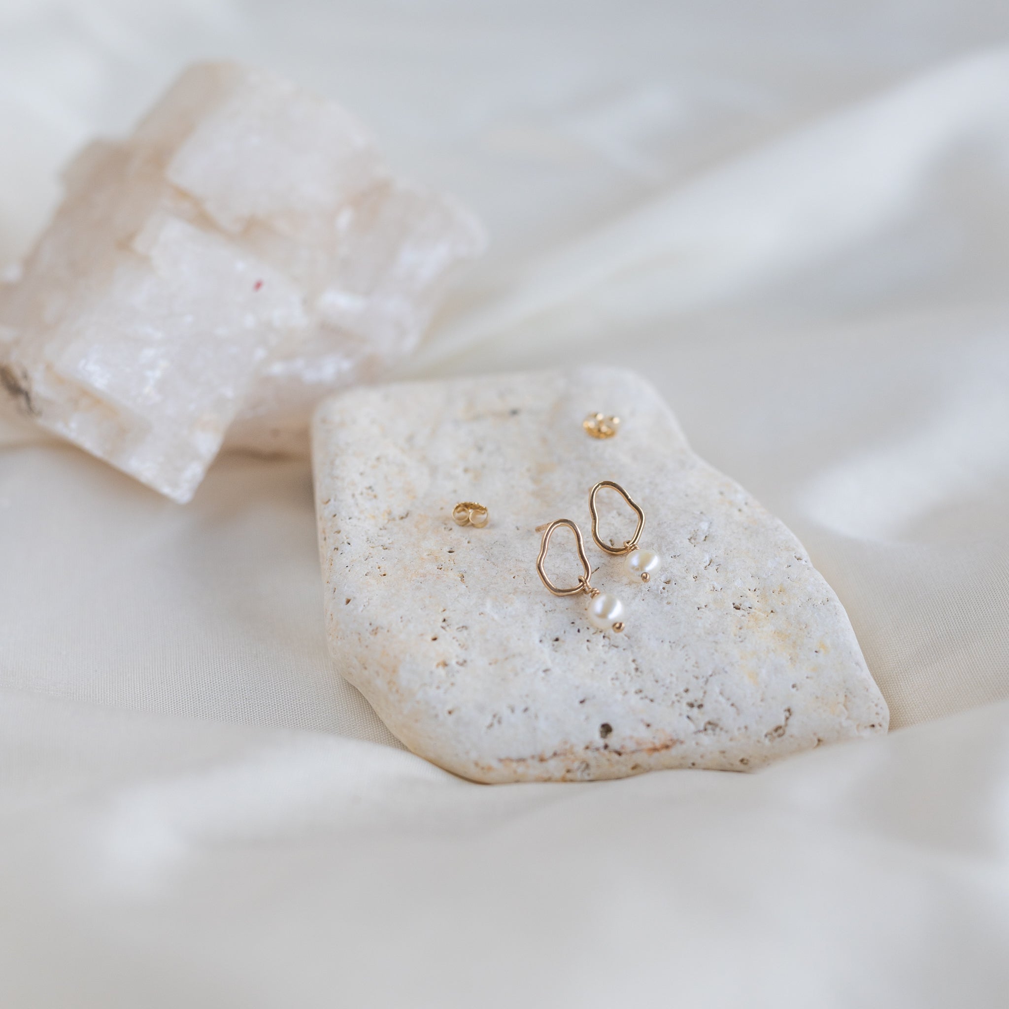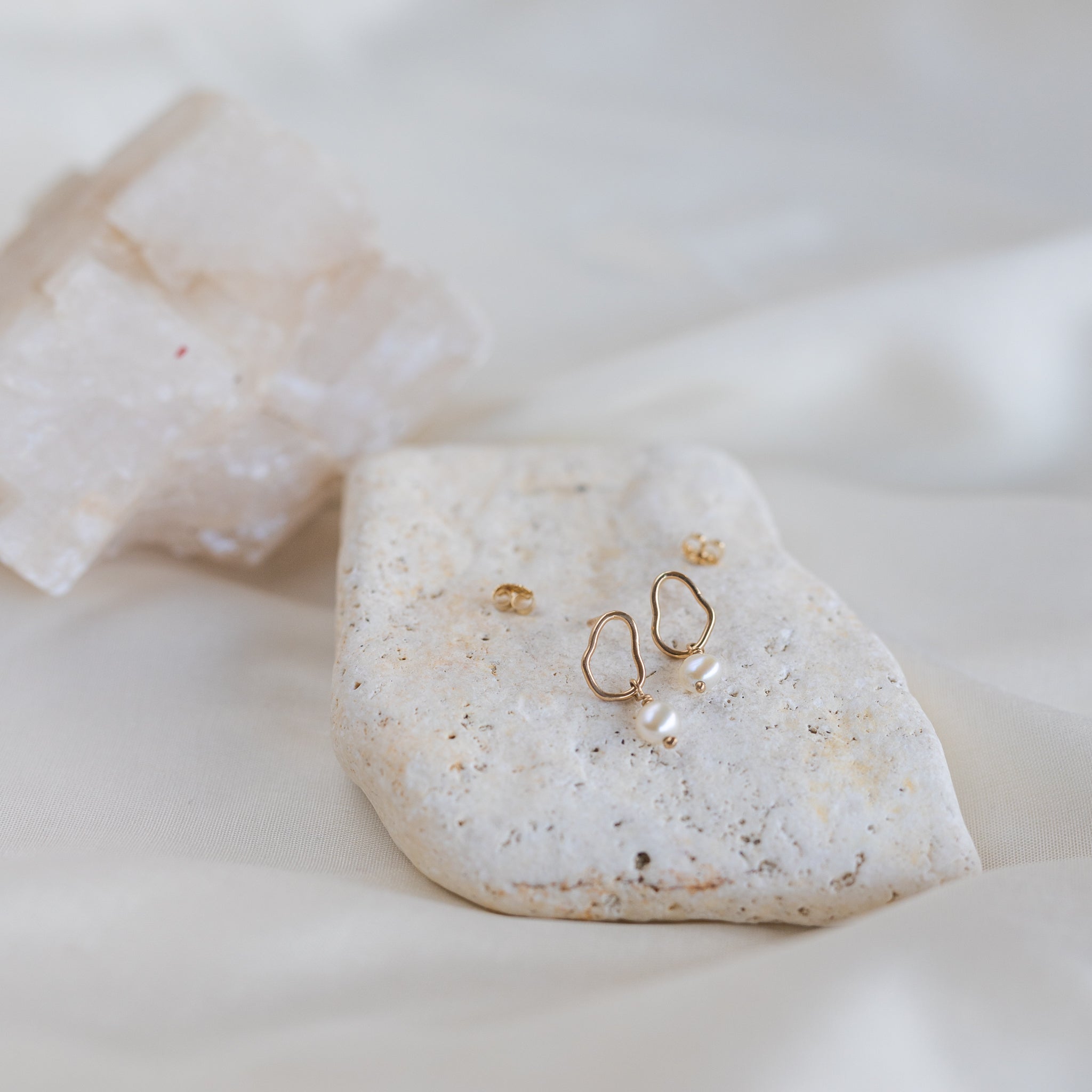 Studs from our Vök collection in 14k gold with fresh water pearls.