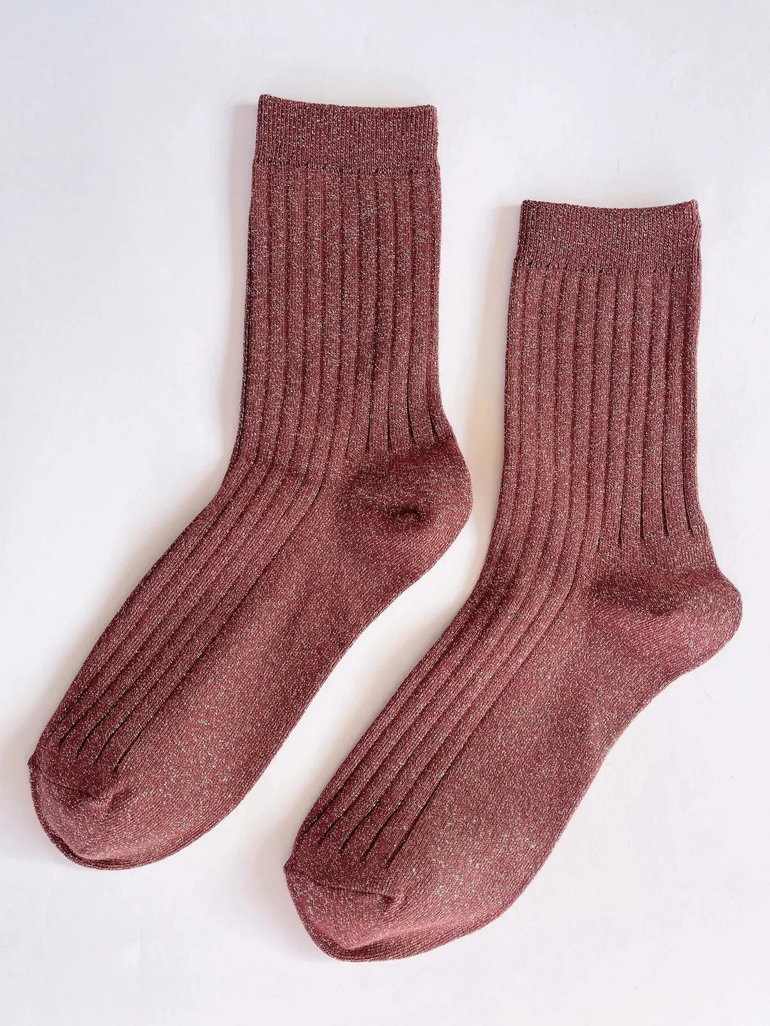 The perfect height, knit rib socks with just the right amount of sparkle! Super supple & soft modal yarn blend.