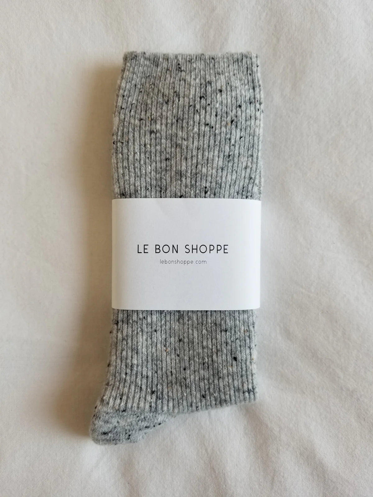 Made of a simple wool-blend, these socks are the perfect essential for cold weather. Snow Socks have a charming speckled look with calf length coverage. Double them for extra warmth while they carry your feet through the season with elegance. Pair them with anything from shearling booties to fisherman sandals in the fall.