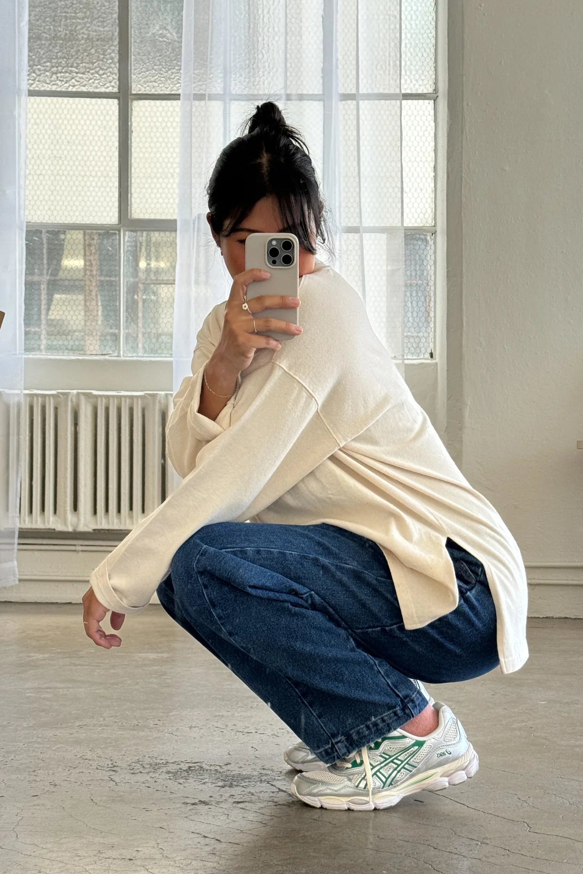 Sometimes we love to borrow things from our beau's closet to create a fun and effortless look. Sunday Tee is inspired by menswear classic long sleeve tee. Subtle yet playful high side slit transform this simple piece into a fun closet staple. Sleeves are wide enough to roll up and pairs beautifully with the Balloon Pants. Perfect for layering during the cooler months, and throwing over your swimsuit as a tunic throughout the warmer months.