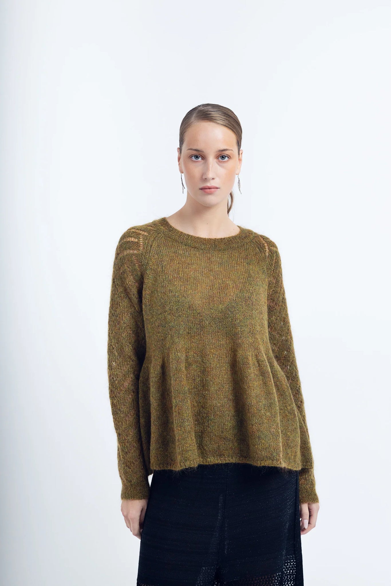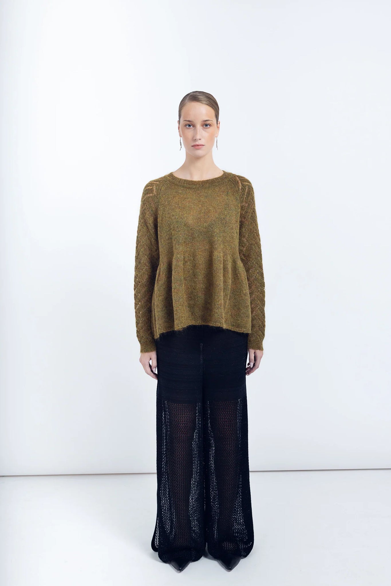 Softly knit in Italian mohair, Agnes is a feminine yet relaxed style with statement sleeves and peplum bottom