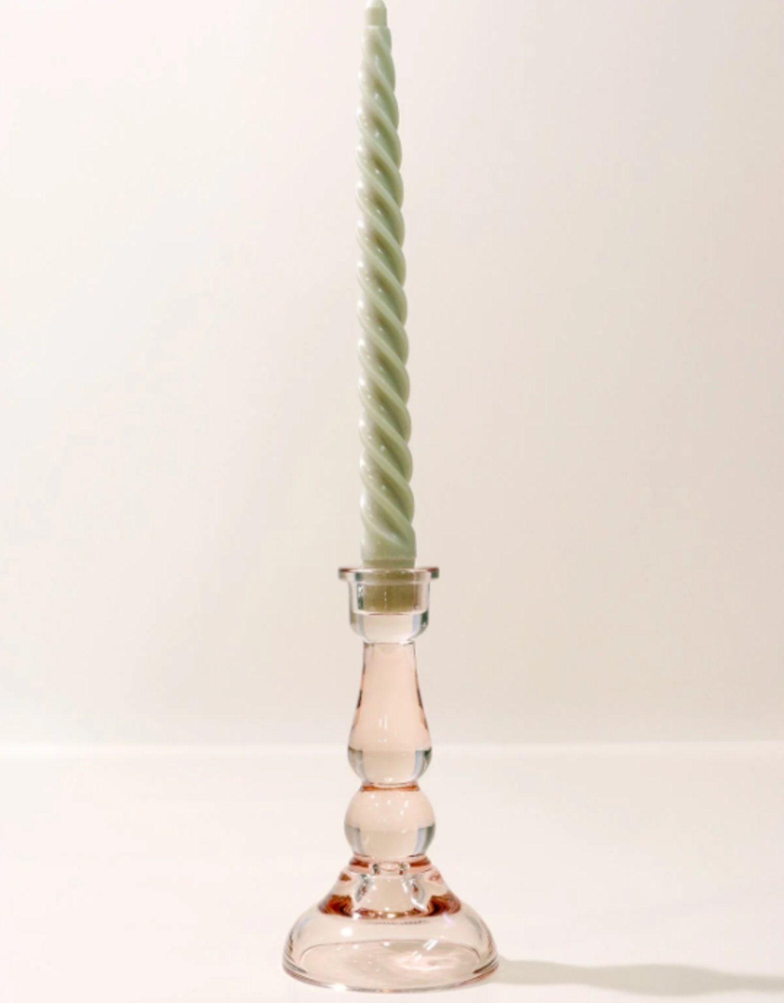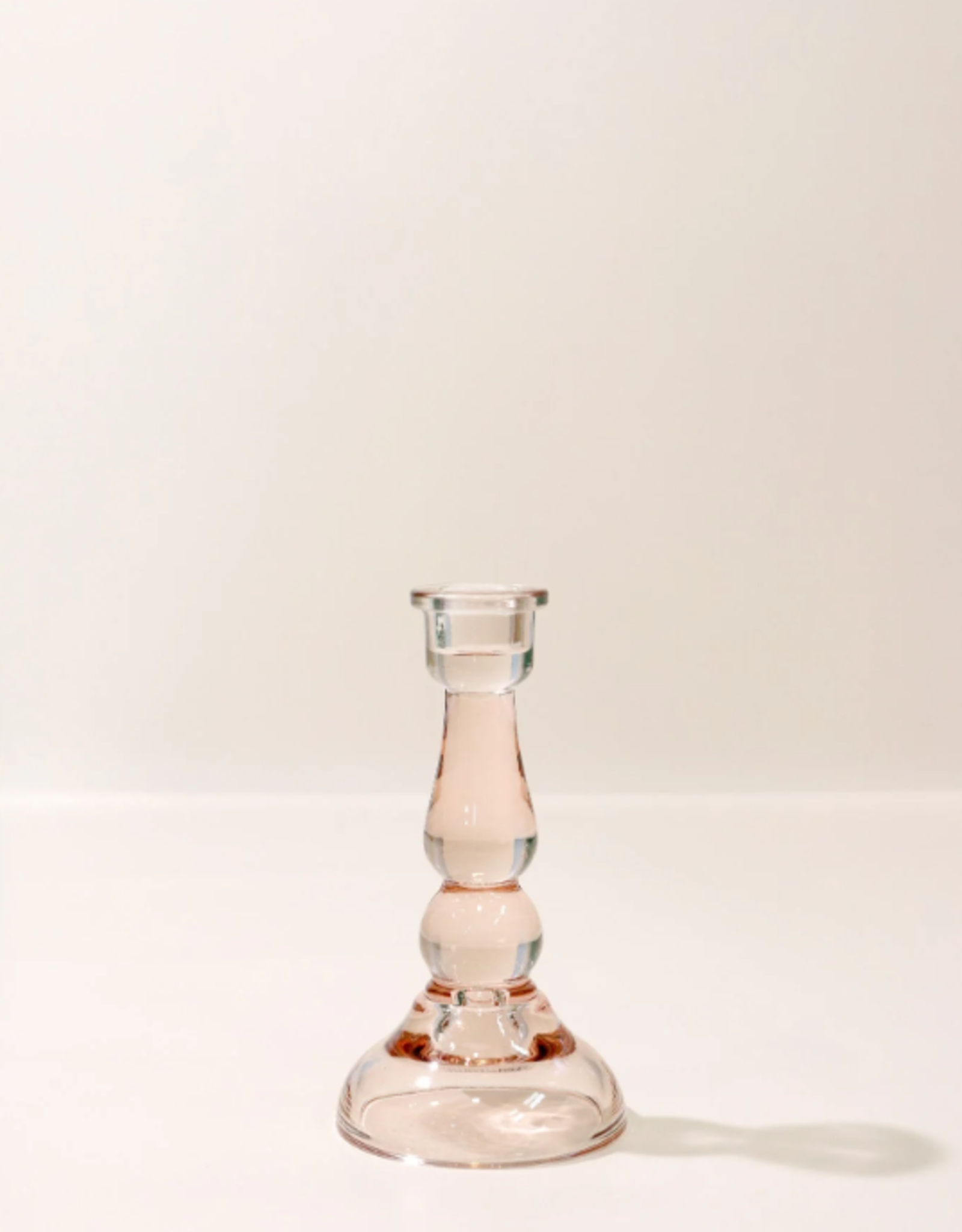 Smooth glass candle holder in a beautiful amber colour. The classic shape will fit in with all of your home decor.
